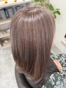 ハイライトはせず、根本と毛先にカラーのみで仕上げました。